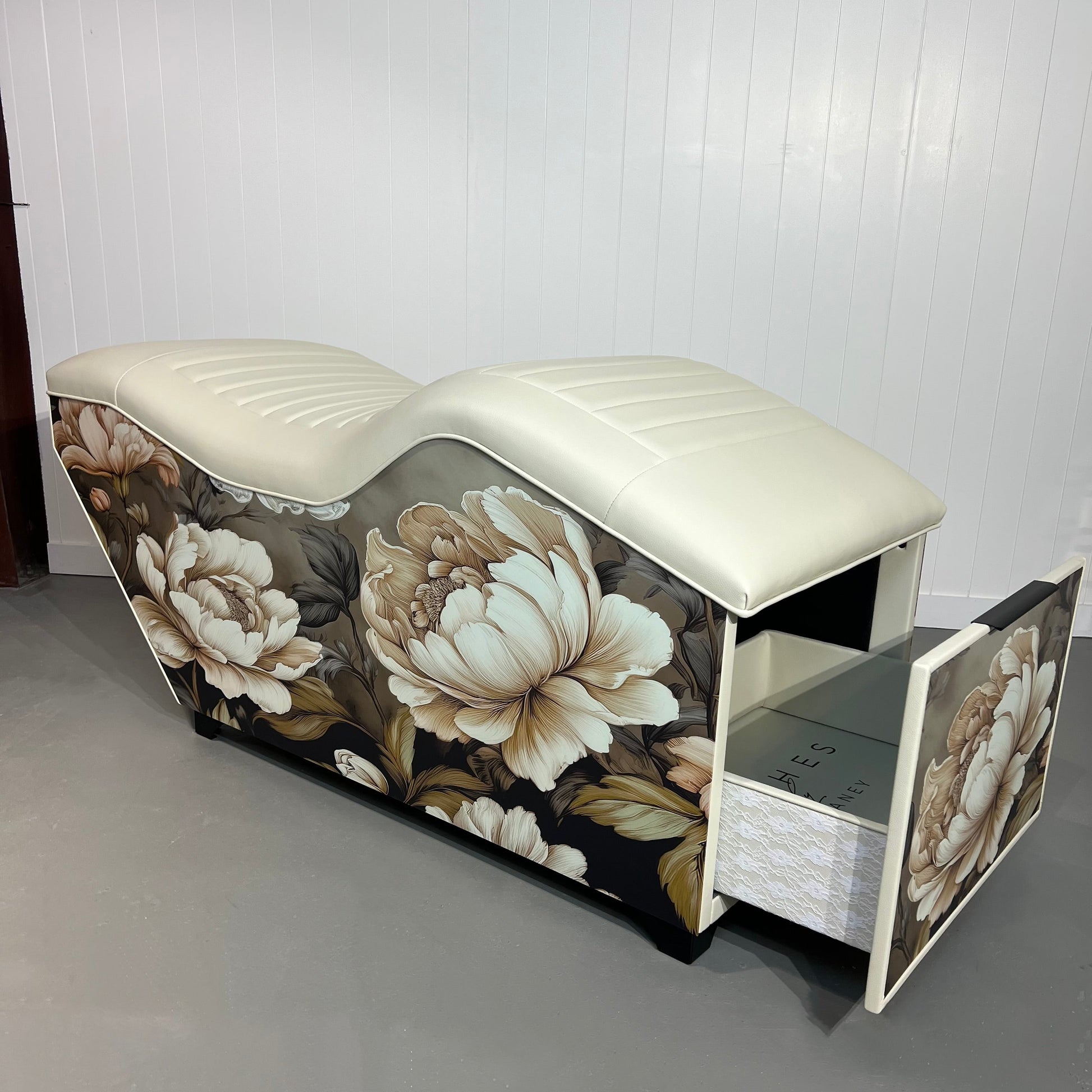 Our Graphic Design Beds are crafted using premium matte vinyl. This option allows you to showcase your unique style + branding directly on the base of your bed, transforming it into a true statement piece.