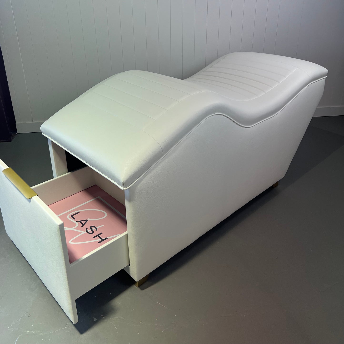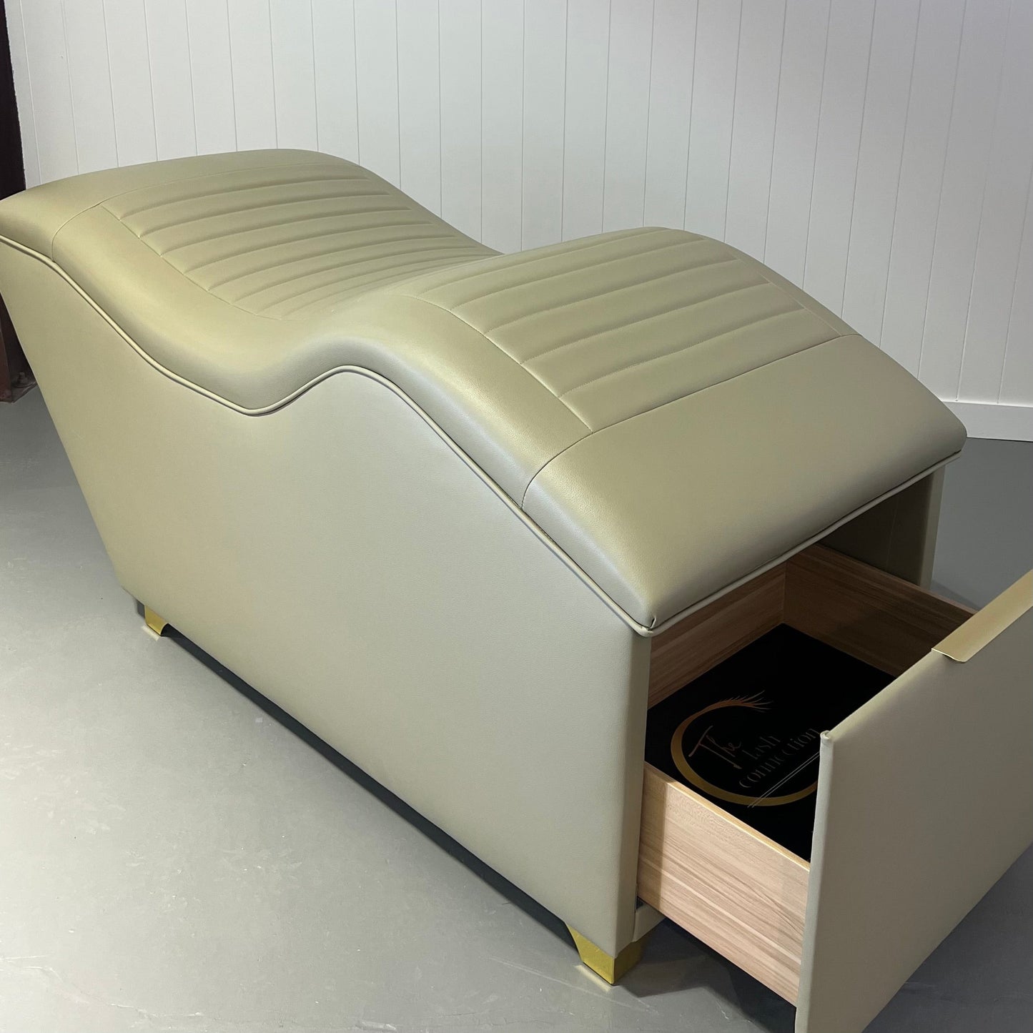 Unlike traditional leather, our high-end eco-friendly leather—delivers all the luxury without compromise. Its buttery-soft pebble texture feels indulgent, while its exceptional durability, abrasion resistance, and stain resistance ensure long-lasting beauty through years of daily use. Easy to clean and maintain, this performance material withstands the demands of a busy lash studio while still offering an authentically refined aesthetic.